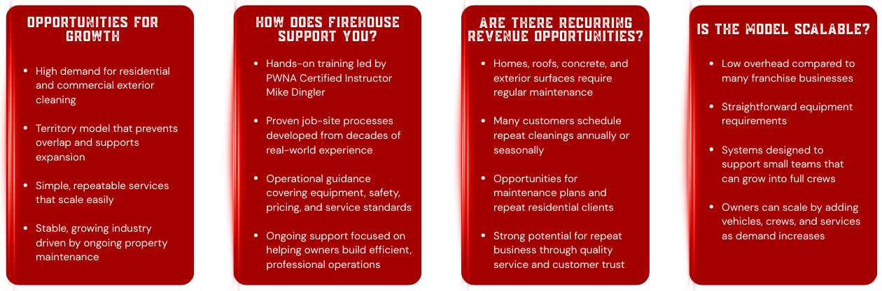 Send us your contact details so we know you’re interested in exploring a Firehouse Power Washing franchise in your area.